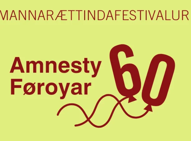 Í 1965 varð Amnesty International Føroyar stovnað, sum merkir, at felagsskapurin í ár hevur verið virkin í 60 ár. Hetta fer Amnesty at hátíðarhalda um vikuskiftið við eini røð av tiltøkum – sofaprátum, verkstovum, framløgu, bókapráti, filmssýning og føðingardagshaldi við røðum, tónleiki og sofapráti.