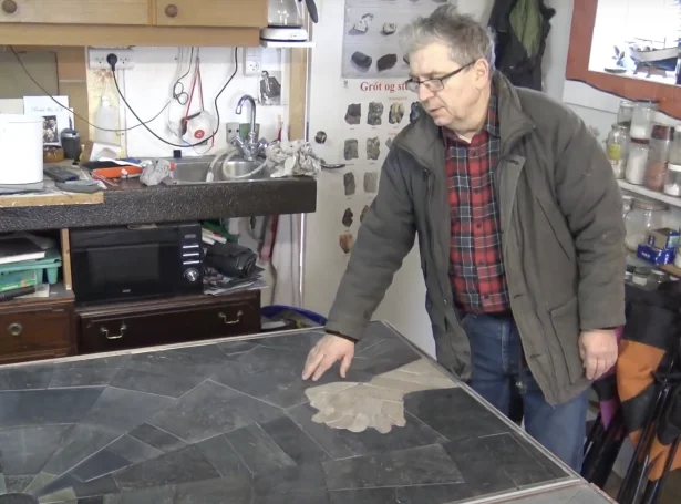 Eisini verður ein grótmálningur at síggja, har ið tilfarið er mjølvað, m.a. úr griskum marmori og koli úr Hvalba.