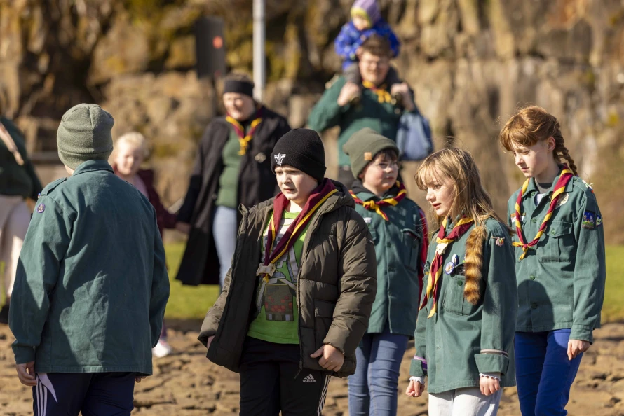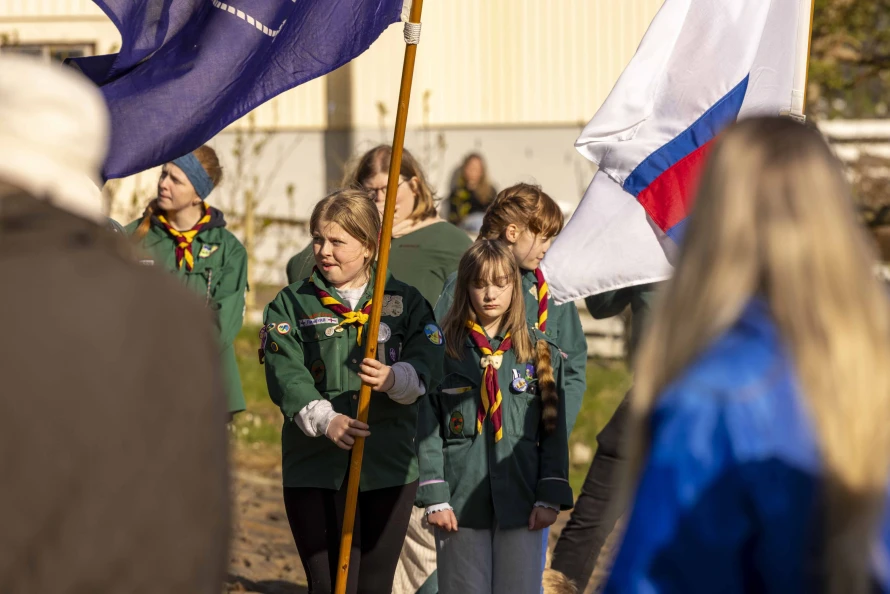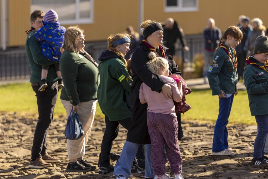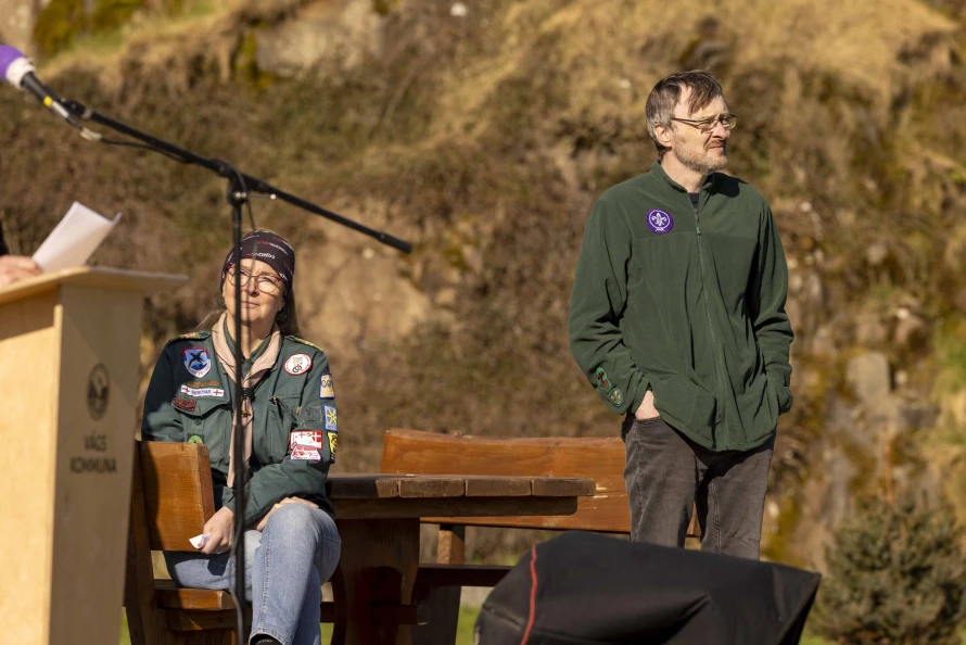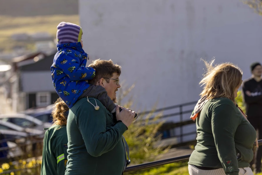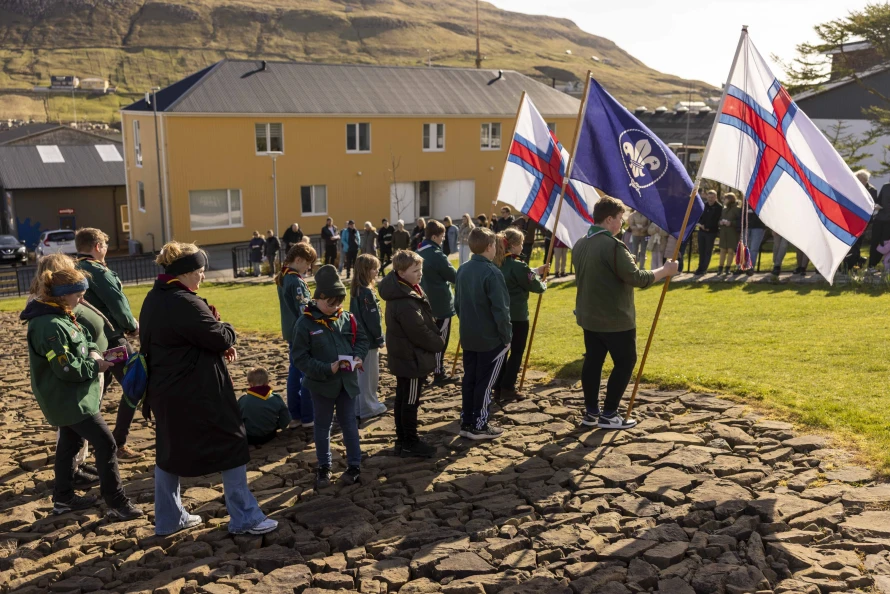 Skótaliðið Royndin skipaði fyri flaggdagshaldi í góðveðrinum Vági. Bjarni Hammer helt røðu
