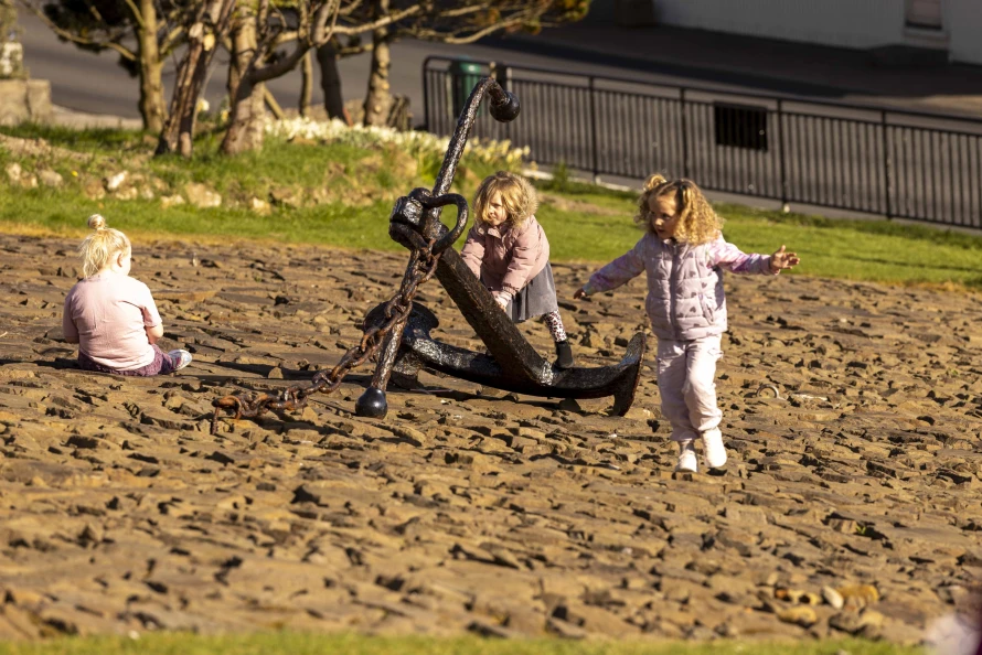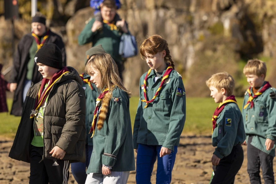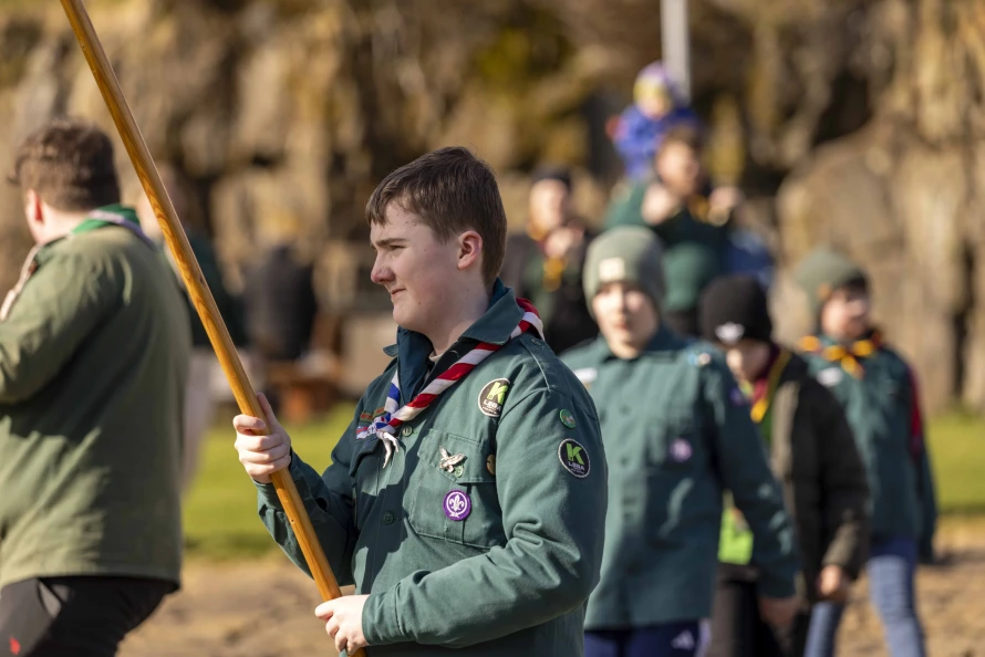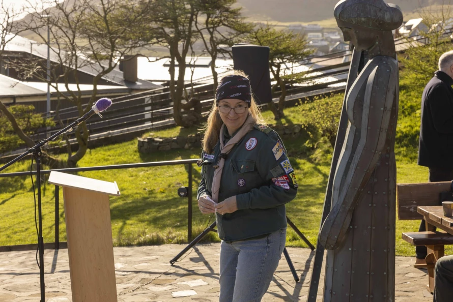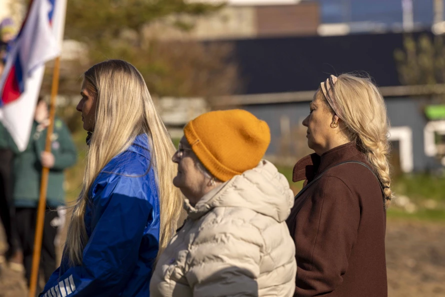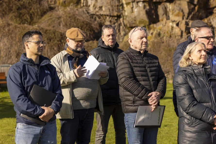 Skótaliðið Royndin skipaði fyri flaggdagshaldi í góðveðrinum Vági. Bjarni Hammer helt røðu