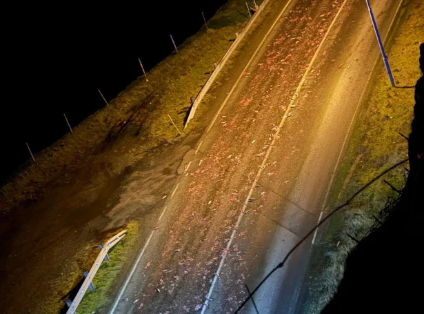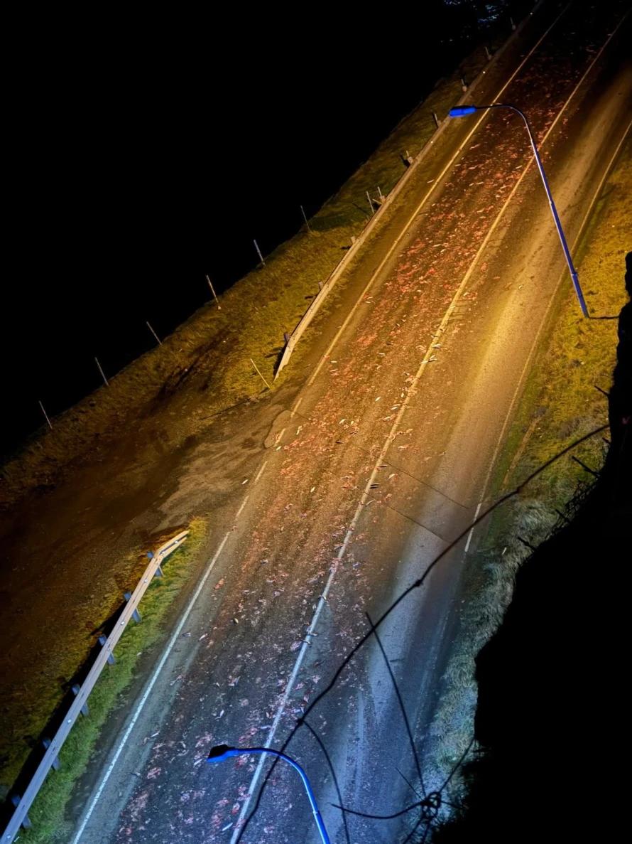 Tað er ikki møguligt at lata vegin upp aftur fyri ferðslu fyrr enn vegurin er væl og virðiliga spulaður og reinsaður, tí talan er um hála evju, ið liggur á vegnum, upplýsir vaktleiðarin hjá løgregluni.