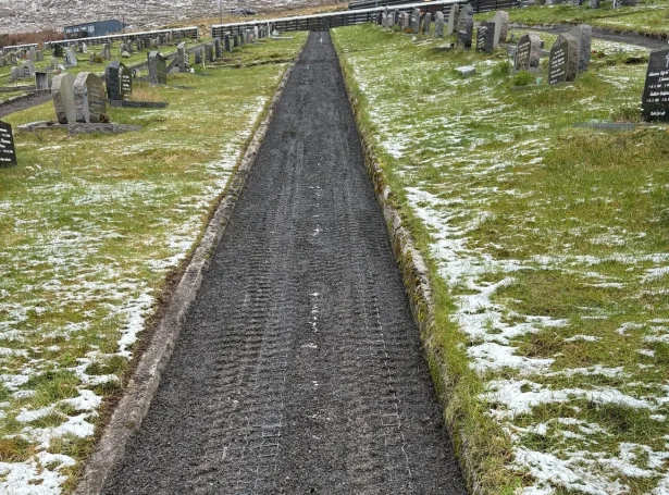 Ein partur av arbeiðinum er at gera nýggjar gøtur í kirkjugarðinum, og at seta gamlar gøtur í stand. Í hesum sambandi verður ein roynd gørd við plastikkmáttum, har skervur veður lagdur í. Kommunan vónar, at allar gøturnar í kirkjugarðinum, sum ikki eru asfalteraðar, kunnu umvælast við loysnini nevnd oman fyri.