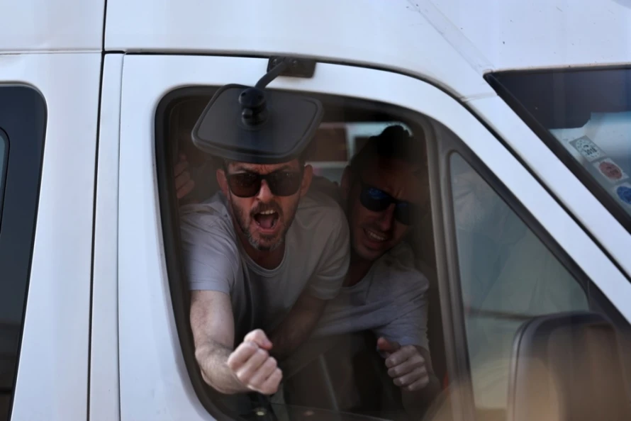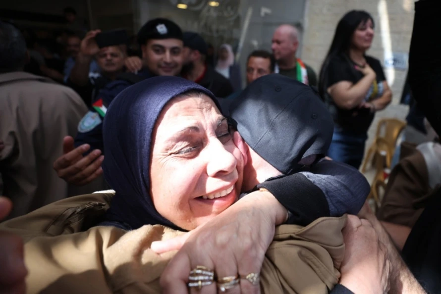 Samstundis sum ísraelsku gíslarnir komu heim og vórðu innlagdir til kanningar á Ichilov og Shepa sjúkrahúsunum í Tel Aviv, fóru bussar hjá Reyða Krossi koyrandi við fleiri túsund palestinskum fangum úr fongslum í Ísrael til Ramallah á Vestara Áarbakka.