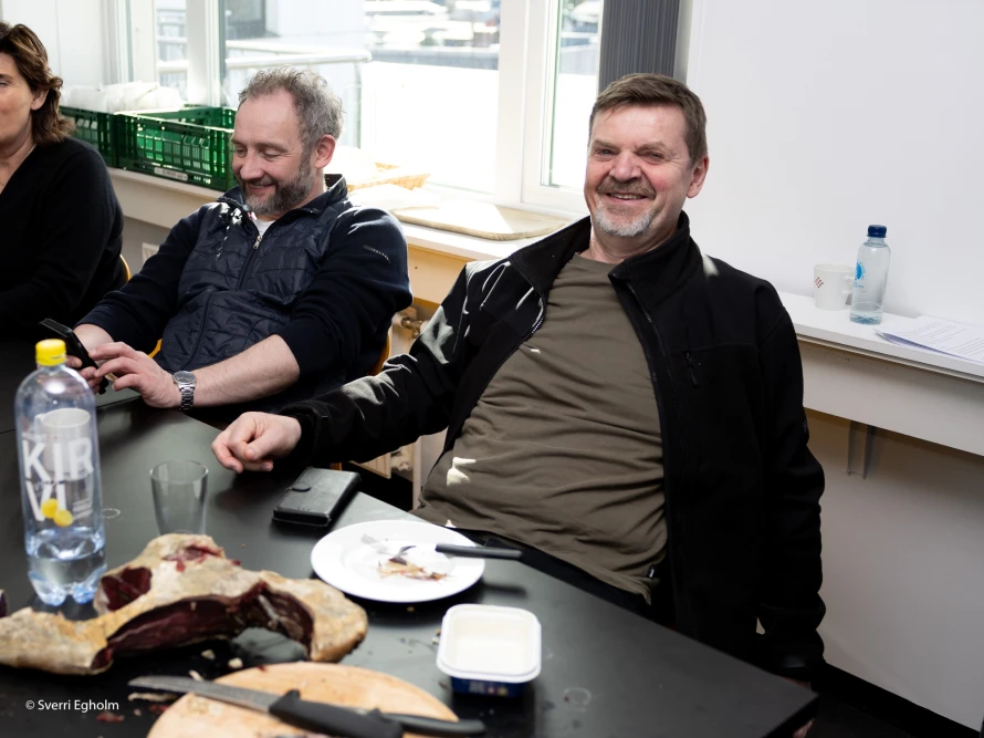 Tjógvið er viðskeri, og í matarhølunum gongur prátið lystiliga, meðan steðgur er, og fólk fylla sær kaffi í koppin aftur.