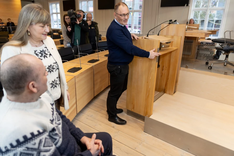 - Vit í formansskapinum settu okkum fyri beinanvegin, tá vit byrjaðu tingsetina, at tingsalurin skuldi liva upp til breksáttmálan. Men arbeiðið hevur drigið út, tí tað vísti seg, at hetta gjørdist eitt størri inntriv í løgtingsbygningin, enn vit høvdu roknað við. At tað so gjørdist fyrrverandi løgmaður, ið verður tann fyrsti, sum fær gleði av hesum, er bara gott, sigur Bjørt Samuelsen.