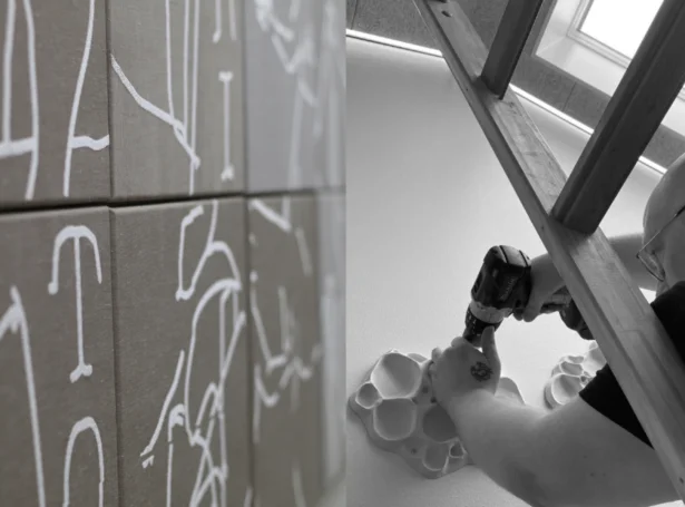 Kirstin Helgadóttir hevur skapað eitt stórt tekstilverk, ið hongur sum ein frisa yvir høvuðsinngongdini.