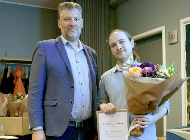 Jóan var ein av trimum lesandi, ið fekk heiðurin, kallaður E-kandidatprisen 2025, sum Elektrofondet letur.